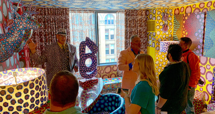 Want a look inside? Here are 30 pictures of Saint Kate (including peeks at the artist-designed “Canvas Rooms”), plus five previously unpublished pictures from that time we stayed overnight in the haunted penthouse above Shaker’s Cigar Bar.