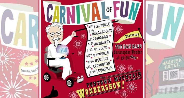 WR: We have three acts inside the club. The Dan Band is a hilarious and filthy musical act. They’ve been featured in The Hangover, Old School, and Starsky & Hutch. Go-Go Amy is a professional burlesque dancer and fire-eater out of L.A. Christopher Wonder offers a rowdy magic show. You’ll need a ticket to see the acts inside the club, but outside we’ll have our Airstream trailer parked with a small collection of items we’re putting on display at Funtown for anyone to see. You’ll recognize it by the mannequin wearing an authentic Colonel Sanders suit driving a Hoveround. We have him on remote control, so he’ll be patrolling the area to lure the curious into the show. We hope a lot of people come by to say hi.