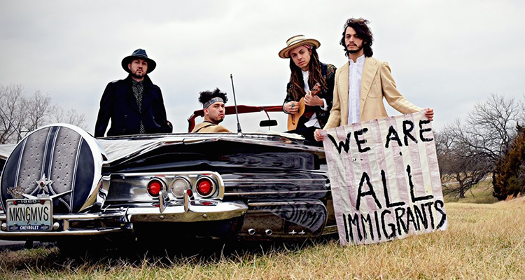 “Making Movies blends pulsing Afro-Latino rhythms, psychedelic jams and rock ’n’ roll swagger into powerful live performances, full of theatrics and cathartic climaxes. Armed with the ambitious and politically charged 2017 release I Am Another You—’lyrically and sonically one of the best albums of the year,’ NPR raved—and a companion EP, You Are Another Me, the Kansas City band punches out one high-energy song after another. The foursome showcases their Latin American roots, with frontman Enrique Chi incorporating traditional instruments like the Panamanian mejorana alongside electric guitar, or the Chaurand brothers swapping drums and percussion for a dueling zapateado huasteco, a traditional form of dance from Veracruz, Mexico. The band’s political idea is straightforward enough that they can express it in four words: ‘We are all immigrants.'”