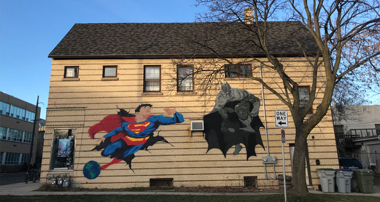 Anyway, East Side comic book shop The Turning Page, 2452 N Murray Ave., has a big-ass Batman and Superman mural on its south wall, and it’s way better than BvS. (It’s also better than the bad—but not-quite-as-bad—Justice League). Artist Taylor Fiester added ol’ Supes to the exterior of The Turning Page this past summer, and finished up Bats a few weeks ago. His creation is big, bold, colorful, and charmingly DIY—everything the recent spat of DC movies ain’t.
