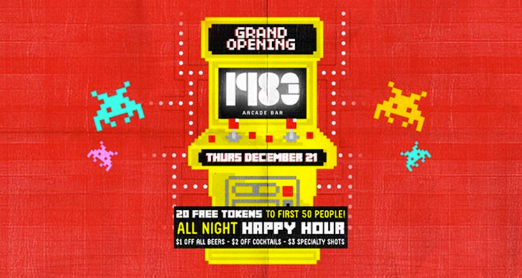 A grand opening celebration will begin at 4 p.m. Twenty free tokens will be given the first 50 customers. All-night happy hours deals will include $1 off all beers, $2 off cocktails, and $3 speciality shots. Oh! All arcade games will be 25¢. YES.