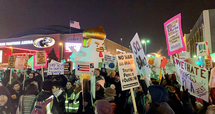 President Donald Trump was in Milwaukee Tuesday night, speaking at the UW-Milwaukee Panther Arena. Meanwhile, a whole lotta protestors were at Red Arrow Park, eventually making their way to the UW-Milwaukee Panther Arena. We went to the protest. It was fun. Afterward, three of us went to Swingin’ Door Exchange and ordered three Bistro Burgers. They were great. Here are the pictures (by Matt Wild and Shea Frevele) to prove it.