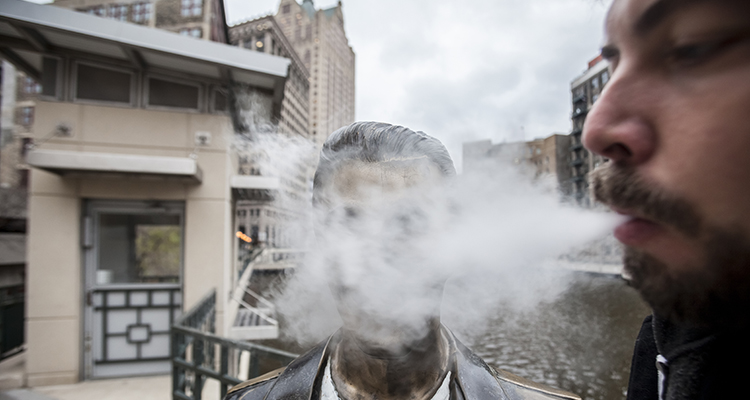 To appropriately document my epic Milwaukee vape sesh so I could one day show my grandchildren (no doubt all severely mutated from a bloodline sufficiently tainted by unregulated Banana Bread vape juice) what it was like to smoke like Stephen Dorff did in 2015, I called upon friend/photographer Michael Goelzer to follow me around and capture my synthetic smoke trail that would lead me to some of the city’s most iconic, beloved, and weird places over the course of the next four hours. Yes, there are so many more places we could have gone (and some we tried to, but were outright told to leave), but I’d like to think we made some good ground given our time constraints and my lung limitations. In what’s likely to be the waning months of vape legality, here’s my “Better Vape Than Never” photo essay.