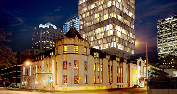 • That proposed 14-story, 220-room hotel on top of the Humphrey Scottish Rite Masonic Center? It’s getting closer to becoming a thing. Urban Milwaukee reports that there’s been some “haggling” with the Historic Preservation Commission, however, over the fate of 20 stained-glass windows that no one seems to know about: