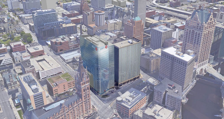 • Preliminary work has begun on a glassy, 25-story, 360,000-square-foot high rise to be located on the site of the current BMO Harris Bank parking garage at N. Water St. and E. Wells St. The parking garage is set to be razed, and a formal groundbreaking ceremony was held last week. When completed, the so-called BMO Harris Financial Center at Market Square will be the 12th tallest building in the city. [Urban Milwaukee]