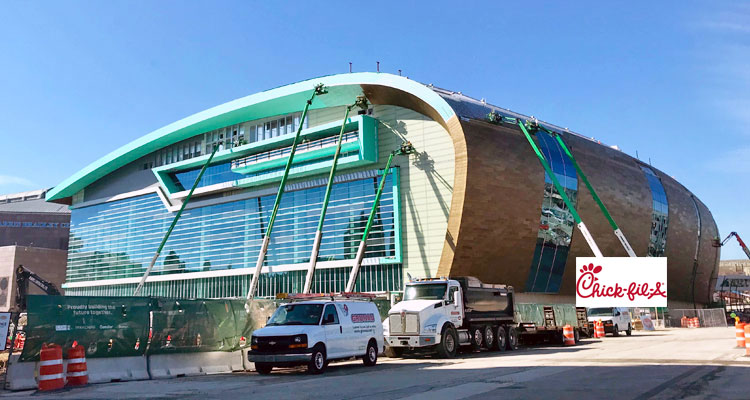 • The new Milwaukee Bucks arena is pretty much done. The new Milwaukee Bucks arena opens August 26. The new Milwaukee Bucks arena still doesn’t have a name (it’s the “Wisconsin Entertainment and Sports Center” for now). But what the new Milwaukee Bucks arena does have (apparently) is a future spot for ever-popular/controversial restaurant chain Chick-fil-A. Yum? And yes, BizTimes mentions the whole “closed on Sundays” thing:
