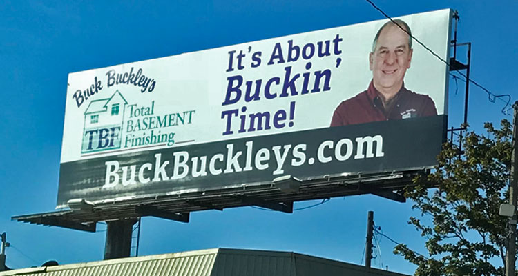In the cluttered and cutthroat world of advertising, it takes something special to stand out. Whether its humor, novelty, or sheer audaciousness, advertisers will use any means necessary to grab the public’s attention. Looking for a local example that successfully combines all three approaches? Look no further than the Milwaukee-area billboards for Buck Buckley’s Total Basement Finishing, which contain the delightful and hilarious tagline, “It’s about buckin’ time.”