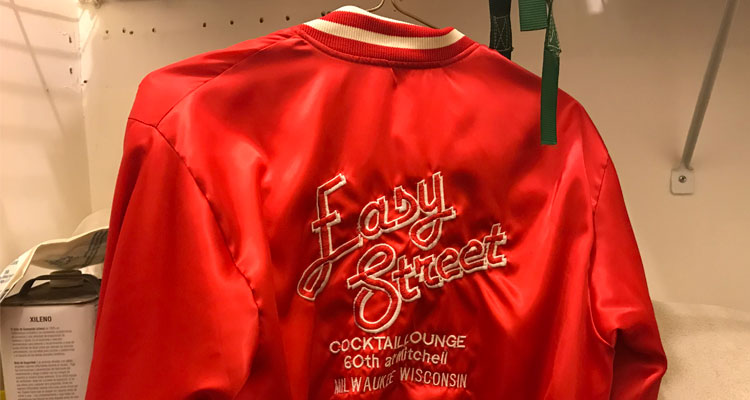 So yeah, it’s an old-school bar jacket for an old-school bar called Easy Street. We can’t dig up any info on the place, though the “60th and Mitchell” location suggests it perhaps used to be in the space now occupied by The Buzzard’s Nest. Anyone know anything about Easy Street? When it was around, its exact location, what it was like? And, more importantly, why one of its jackets would be hanging in the closet of Shaker’s? Thanks! We’re dying to know.