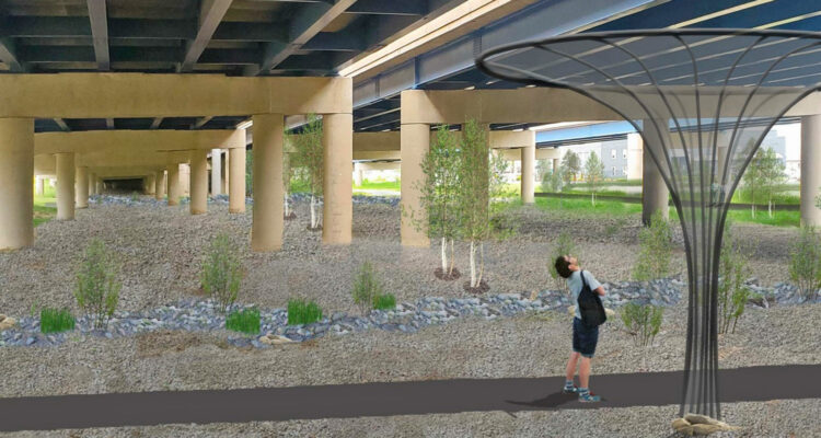 “The Becher Street environmental project follows a larger effort that saw green infrastructure, including a new pedestrian trail, installed underneath the Marquette Interchange,” explains [Urban Milwaukee]. “That project was put into place at the same time a large homeless encampment, known as Tent City, had been established, and subsequently removed, in the area.”