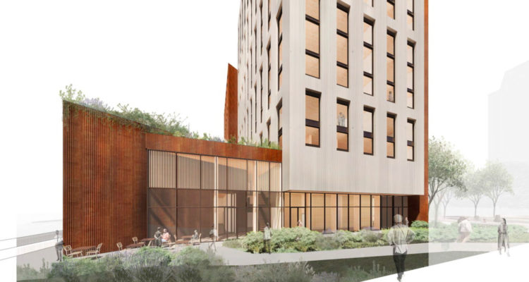• A Madison developer wants to build a 15-story, 220-unit apartment building along the riverfront in Downtown Milwaukee. The so-called Edison building would be located at 1005 N. Edison St. (currently home to the Rojahn & Malaney Co. floral warehouse, which would be demolished), and would include “an indoor parking structure, a second-floor outdoor patio deck for residents, and 8,800 square feet of street-level commercial space, including a cafe overlooking the Milwaukee River.” And oh yeah: the building would be another mass timber project (see below). [Milwaukee Journal Sentinel]