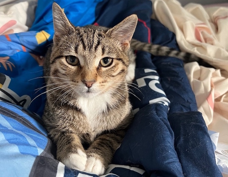 Meet Bizzy! He’s the epitome of a cat’s cat—independent, curious, and full of personality! With a loud purr that could rival a motor, he’s a little bundle of joy who loves nothing more than snuggling up between your legs or curling up next to you at night.