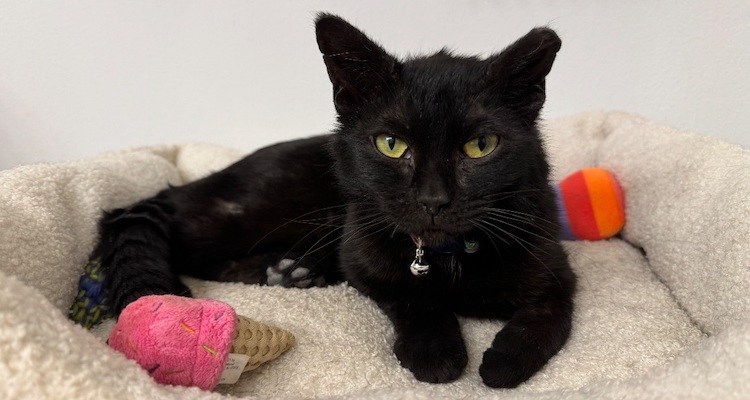 Are you searching for a feline friend who’s equal parts playful, cuddly, and a bit of a climber? Well, look no further because Jazz is here to steal your heart. At just six pounds, this sleek black fur beauty has a unique trait—she’s a little snort machine! Yes, you heard it right. Her tiny snorts will charm you instantly.