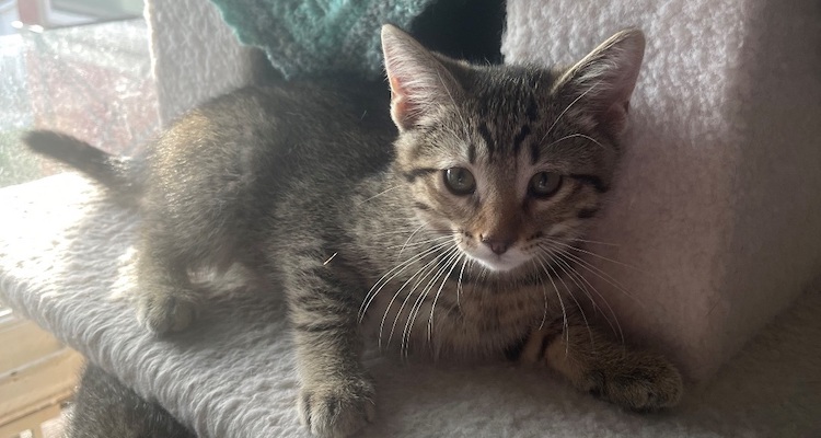 Meet Tango. Who’s the first out the door of the kitten room the moment it’s opened? Tango! Who was the first of his siblings to make “friends” with the resident cat? Tango! Who’s the one who is most likely to jump up on the bed to say “good morning?” Tango! And the last one we can catch when free-range time is over? Yup. It’s Tango!