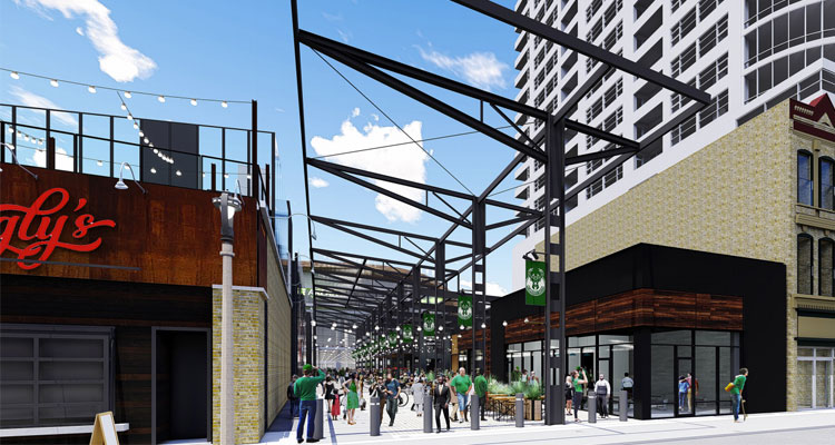 • The Milwaukee Bucks’ much-ballyhooed “Live Block” entertainment district has been updated. Again. This time, a planned outdoor bar has been replaced with a planned 2,045-square-foot, two-tenant permanent building that will be “geared towards food and beverage tenants.” Those tenants have yet to be finalized. [Urban Milwaukee]