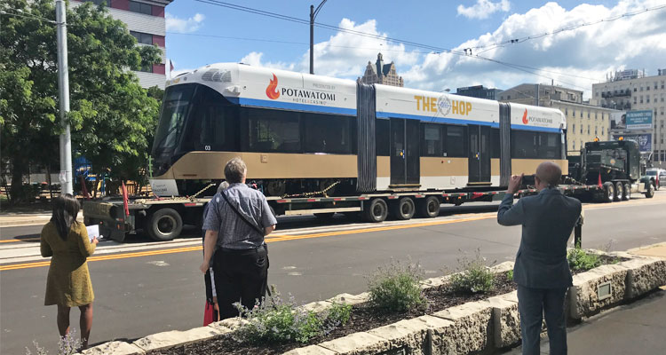 And here’s a picture of the third Milwaukee streetcar. The other two Milwaukee streetcars are currently track-deep in test runs, and the full system is expected to be up and running by the end of the year. Oh, and it’s still called “The Hop.”