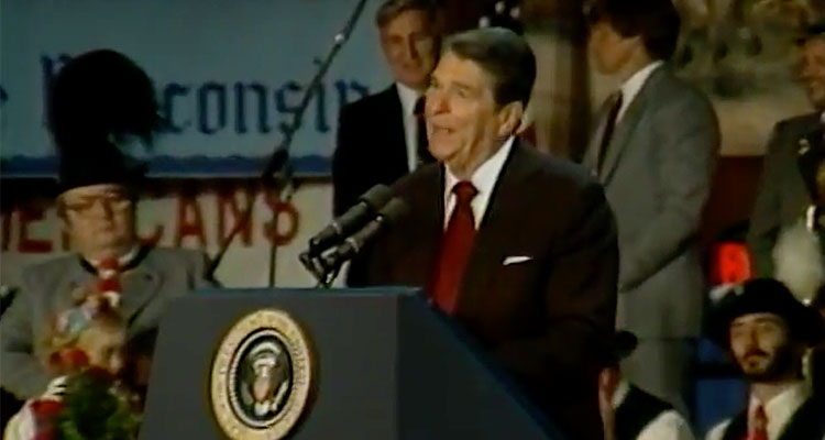 Actual politics aside, it’s safe to say today’s world of American politics is a straight-up nightmare. We have a President publicly calling professional football players sons-of-bitches, a populace divided on whether or not it’s okay for Nazis to murder someone, and a Hillary Clinton book tour. Remember when politics were simply a candidate on the campaign trail, showing up at some random event in some random state, and giving a puffy, inoffensive speech? President Ronald Reagan speaking at Milwaukee’s annual Family Oktoberfest in 1984 remembers.