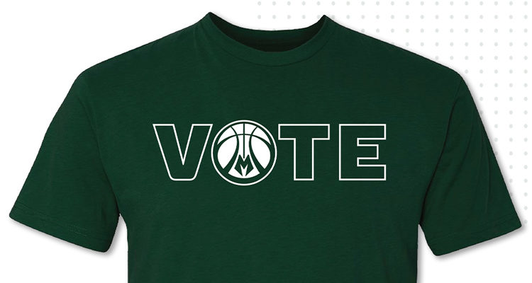 Today also marks the unveiling of a new Milwaukee Bucks T-shirt, “Bucks Vote.” Proceeds from the sale of the T-shirt will go to the ACLU of Wisconsin and the League of Women Voters of Milwaukee County. The T-shirt is available online NOW, and will be available at Fiserv Forum beginning tomorrow. BUY THIS “BUCKS VOTE” T-SHIRT.