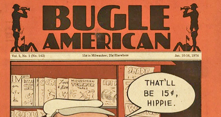 Milwaukee has a long, strange history of alternative newspapers. There’s the Shepherd Express, of course (originally dubbed the Crazy Shepherd), which still graces news racks and restaurant window ledges today. There are countless back-in-the-day examples, too, including the controversial Kaleidoscope, the influential Art Muscle, and the beloved Orbit. Then there’s the Bugle American (later just the Bugle), an alt-weekly that published more than 300 issues from 1970 to 1978. The Bugle American was notable for several reasons: it was founded by underground “comix” superstar Denis Kitchen (among others), and its offices were totally firebombed.