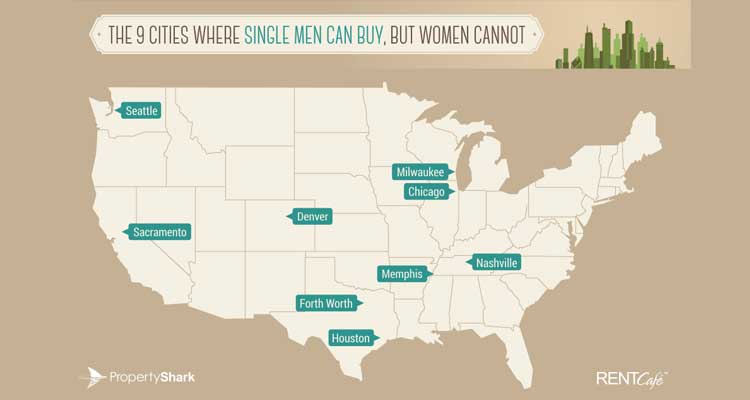 • The other eight cities where single men can afford to buy a starter home but single women cannot are Chicago, Seattle, Sacramento, Denver, Fort Worth, Houston, Memphis, and Nashville.