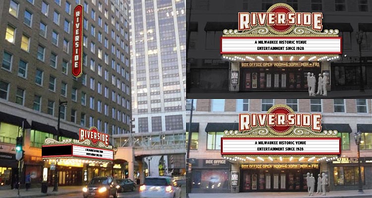 Work on the new signs will be completed in December. Will they serve as catalysts for a re-activation of West Wisconsin Avenue, as Barrett suggests? We’ll leave that question to the folks who can still manage to say such things with a straight face. But who cares? The signs look great, the Riverside will look great, and downtown will look better. Check out some renderings below.