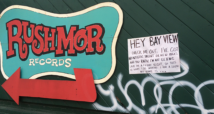 Since 1971, Rush-Mor Records has been a Bay View beacon standing on the corner of Potter and Kinnickinnic avenues. In 1994, Dan Duchaine and Bill Rouleau bought Milwaukee’s oldest and longest-running record store. Despite the shop’s high-traffic location and abundance of blank space on its façade, Rush-Mor’s longtime owners have been fortunate to have never been victims of graffiti. That is, until now.
