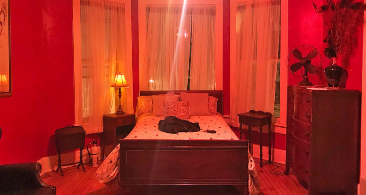 An hour later and I’m out of bed, roaming. I can’t sleep. It’s almost 2 a.m. and I’ve reached the point where I’m looking through dresser drawers for some reason. My search is mostly futile, though I do discover evidence that my lodgings haven’t quite shook their brothel origins. Some things, apparently, never change.