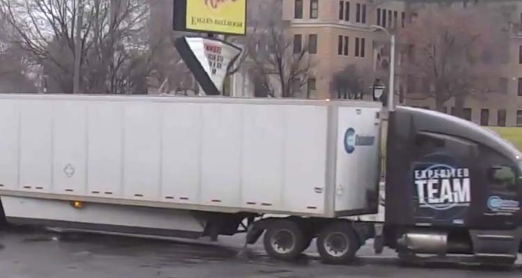 An errant semi cruising around The Rave’s front parking lot Sunday afternoon, however, didn’t appear to share our love. In a video captured by security cameras and posted to the venue’s YouTube account, a Celadon semi accidentally clips The Rave’s marquee while attempting to…well, we don’t know what it was attempting to do. The marquee suffers some minor but undoubtedly costly damage (best seen in this Instagram), and puts a slight damper on the night’s Emmure show, which—let’s check Google here—yeah, is totally a “metalcore” band.