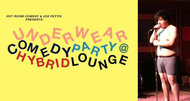 Hybrid Lounge’s Underwear Comedy Party features Christopher Schmidt, Liza Marie, Sammy Arechar, Matty Field, Ashley Huck, Gary Zajackowski, Liz Ziner, Stephanie Hasz, and host Joe Pettis. The show begins at 8 p.m. (7:30 p.m. doors) and costs $5.