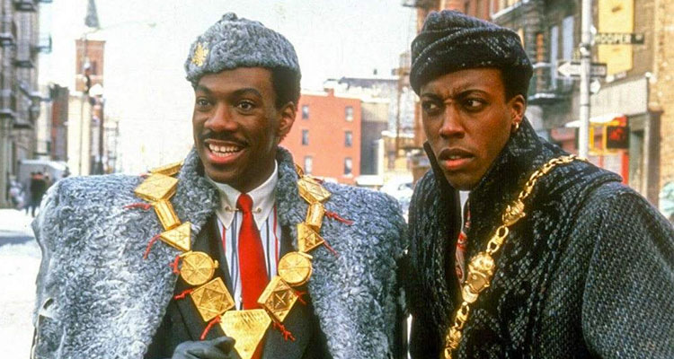 Coming To America tells the romantic tale of Zamunda’s Prince Akeem (Eddie Murphy), who rejects the royal tradition of arranged marriage and flees to America to find his true love. Attempting to pass themselves off as working class students, Akeem and his servant Semmi (Arsenio Hall) get to know their new neighbors in Queens, New York in an effort to meet the future Queen of Zamunda. Will they succeed?