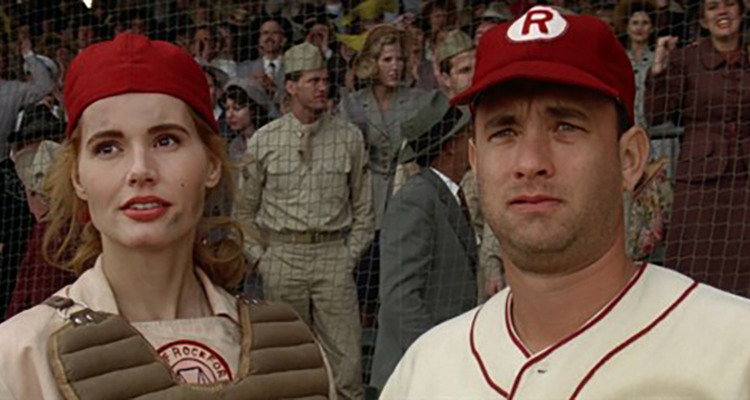 The 1992 baseball blockbuster follows the Rockford Peaches, a real-life team that played in the All-American Girls Professional Baseball League during World War II. Led by star catcher Dottie Hinson (played by Geena Davis) and disgruntled former big leaguer-turned-manager Jimmy Dugan (Tom Hanks), the Peaches travel the Midwest as they take on the likes of the Racine Belles, Kenosha Comets, and South Bend Blue Sox. Joining that dominant battery of leading actors is an All-Star supporting cast that consists of Lori Petty, Madonna, Rosie O’Donnell, Jon Lovitz, Bill Pullman, and many more.