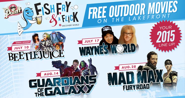 Since 2009, for a handful of Fridays throughout the summer, Point Fish Fry & A Flick has transformed Discovery World on the lakefront into an outdoor movie mecca. Co-produced by the Pabst Theater Group, the series will return for its seventh season in 2015, and will feature free screenings of movies both old and new, free beer tastings from Stevens Point Brewery, fish fry and other goodies (shrimp, poutine, hot dogs, brats, fries, snacks) from Bartolotta Restaurants, and over 3,000 satisfied Milwaukeeans. It’s a wonderful summer tradition, even though we’re still smarting from that time Major League got rained out. Major League!