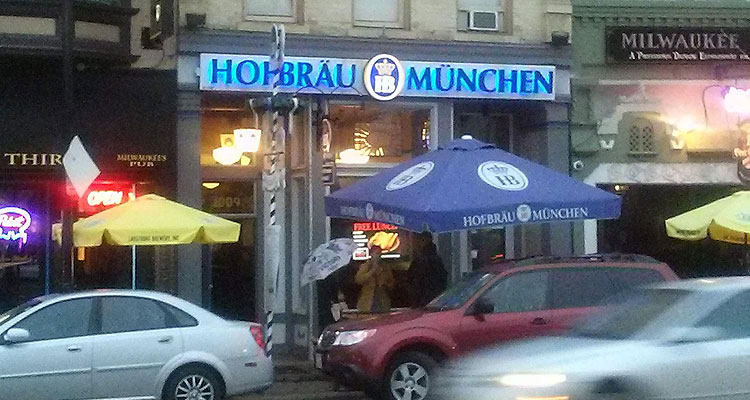 It was a dreary night and I was in a reflective mood as I rode the bus downtown towards the Old German Beer Hall (1009 N. Old World 3rd St., 414-226-2728). Nick Drake’s Pink Moon filled my ears as I approached the fog-covered buildings, and as I made it to State Street I disembarked from the GreenLine and walked west to my destination. On the previous two weeks I had gone to Irish and Polish restaurants for fish, and this week I decided on a place steeped in German tradition. It only seemed natural to go to a German place; in addition to Milwaukee being known as the “City of Festivals,” its historically large German population has also helped earn it the name of the “German Athens of America.” The Old German Beer Hall is modeled after the Hofbräuhaus in Munich, a famous beer hall that was first opened in 1589. That beer hall, as well as the one in Milwaukee, both serve Hofbräuhaus beer.