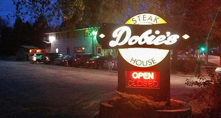 Dobie’s was started by Austin—who went by Dobie— and Alma Doberstein in 1954, when they built a house to raise their family, and began serving custard out of their kitchen window. A decade later they added a dining room to the back of the house, and it became a steakhouse. Dobie’s is still in the family, and you still feel like you are dining in someone’s house when you visit. It calls itself a steakhouse, but it could also be defined as a supper club, one indicator being that it doesn’t open until 4 p.m. each day, and is closed Mondays and Tuesdays.