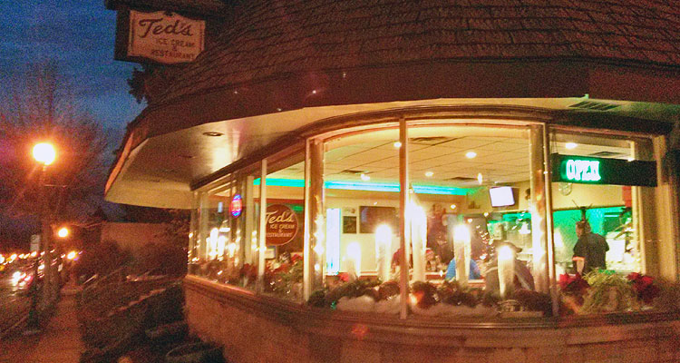 About a year ago I was given a copy of the Directory Of Wisconsin’s Best Ma & Pa Restaurants, a publication of Our Wisconsin magazine. It lists 455 cafes, supper clubs, and diners in the state, and has coupons for many of them. Ted’s Ice Cream & Restaurant (6204 W North Ave., Wauwatosa, 414-258-5610) is under the Milwaukee County section; listed after “Best Thing On The Menu” is “The shrimp and fish are excellent.” That was enough to convince me to give it a shot.
