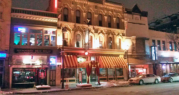 The building that houses Buck Bradley’s has been standing since 1854, when it originally started as a furniture store. It has had various additions and changes done to it over the years, and in the early 1990s it was remodeled into a replica of a bar and eatery from a century before its time. As I walked in, I was greeted by a host standing at a podium. I walked past a dining area on the right, and large animal heads on the wall on the left, and took a seat almost directly in the middle of the long bar. I had heard the story before, but the bartender told me that the bar is the longest straight bar in the United States east of the Mississippi River, being 75 feet in length. The granite-topped cherry wood bar is matched by an ornate cherry wood back bar, where large mirrors hang. The wall opposite the bar has mirrors as well—and photographs of Milwaukee’s past—with seating for more diners below them.