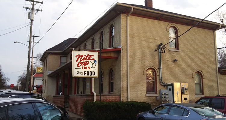 The Night Cap Inn has been standing since 1857, and has mainly been a hotel, restaurant, bar, or combination of those things over the years. From the 1870s into the early twentieth century, it went by names such as The Commercial House and The Commercial Hotel. It was purchased by William and Lily Braasch Reich in 1915 and became “Reich’s Hotel.” Their son Bill and his wife Isabelle took it over in 1938, and Isabelle restarted the restaurant part, which had been dormant for years. It appears food has been a part of the building ever since. It changed hands a few times over the following decades, until John and Betty Betenz bought it in 1974. Betty, who passed away in 2016 at the age of 93, was already known for her potato pancakes at the time, and her legend continued to grow until she became known as the “Potato Pancake Queen of Palmyra.” After John died in 1986, Betty ran it for another two years on her own; Helmut and Sue Nestler bought it in 1988 and have owned it since.