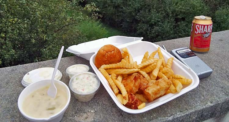 When I ordered, I was asked if I wanted a two piece or three piece meal, and I went with the latter. I was also asked if I wanted french fries or steak fries, and what type of soup I wanted. Since seafood chowder was an option, I quickly chose that.
