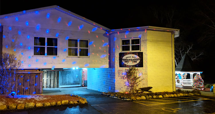Such was the case this past Friday, when I made my way past two of these signs in a sleepy residential area. It was dark and I didn’t really know where I was, but I figured the signs would lead me to the lake, and thus to the restaurant I was looking for. Sure enough, I came upon a giant parking lot, and an even more imposing building, which houses the Bass Bay Brewhouse and the Aud Mar Banquet Hall (S79W15851 Aud Mar Dr., 414-377-9449).