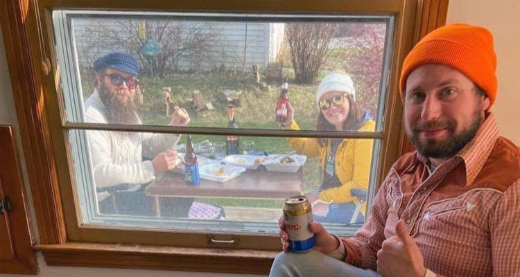 Zack forgot his trumpet and a Santa bag at my place on the night of the party and I’ve been meaning to get them back to him since. Recently, at a time when many people are looking for things to do to pass the time—like playing music—Zack asked if he could get his trumpet from me. He offered to come down to my place, and I said I could leave it out on my deck for him. He later asked if he could pick it up on Good Friday, and then suggested that we have a fish fry and that he could eat his on my deck. I told him that sounded like a great idea, but that he would have to bring his own chair and beers. I also said he had my permission to piss in my backyard if need be, because I wasn’t going to let him in my house. Zack told me that all sounded all right to him, and that his wife, Jessica, would be coming along as well.