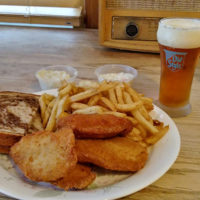 “Eating alone too?” a guy at the table across from me asked, before saying something to himself about all the loneliness in the world, and something about how his wife was working at the moment. When my Old Fashioned arrived, he ordered himself one too. No one is really alone with an Old Fashioned, I suppose, especially if they are about to be joined by a fish fry as well. The drink was fruity and fizzy, with a fruit muddled bottom and fruit garnished top. In between the fruit, an overabundance of ice cubes had banded together to form some sort of super ice chunk that was protruding out the top, looking like it was trying to knock off the garnish and escape.