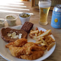 The coleslaw looked standard and basic, which I suppose it was, with its no-frills carrot and cabbage, but it had a good crunch like it was fresh. It wasn’t overly creamy and didn’t have pepper or other seasonings—but like the chowder, fish, and pancakes, it had balance and consistency. A common piece of light rye bread came along for the ride.