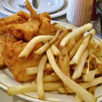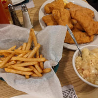 I started to sweat. How was I going to eat the last two pieces? Fish aren’t supposed to be taken home from all you can eat! You know the rules! But it wasn’t my fault. I didn’t order these last two! I remembered what a friend had told me 217 fish frys ago, when he saw someone hadn’t finished their fish: “Those fish died for nothing!” These fish had to be rescued and taken home so they wouldn’t die in vain. But would taking them be allowed? It was about then that my waitress returned, and after first asking me if I needed MORE fish, she graciously offered to box up the two pieces I still hadn’t touched. Yes, I did finish them by the time the night was over.