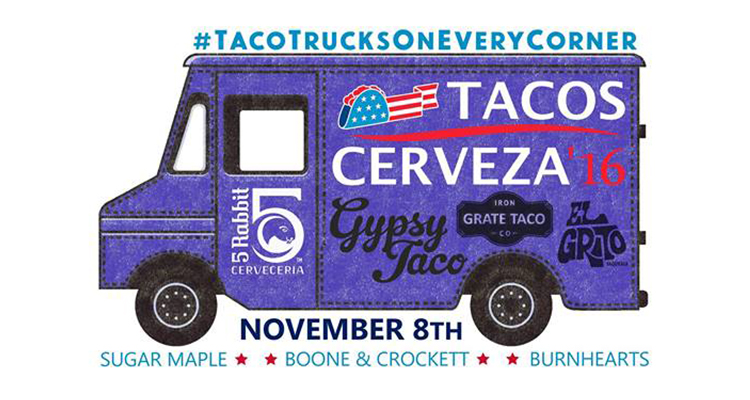 On Tuesday, November 8, from 5-11 p.m., Boone & Crockett, Burnhearts, and Sugar Maple will host “#TacoTrucksOnEveryCorner” outside of their businesses. Boone will serve up food from El Grito Taqueria. Meanwhile, Boone’s ever-present affiliate, Gypsy Taco, will migrate to Burnhearts for the occasion. Sugar Maple will host a third party candidate, as Iron Grate BBQ will run as Iron Grate Taco Co. for one night only.