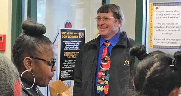 Donald A. Gorske of Fond du Lac, Wisconsin has been seen. He’s been acknowledged. He’s been recognized. He’s left a mark. Donald A. Gorske of Fond du Lac, Wisconsin has eaten more than 29,000 Big Macs since 1972. And on the morning of January 26, 2017, Donald A. Gorske of Fond du Lac, Wisconsin appeared at a Wauwatosa McDonald’s to be acknowledged once again, to be seen once again, to revel in his achievement, to inspire those who might follow in his footsteps, and to hand out complimentary bottles of Big Mac Special Sauce. It was kind of great and kind of weird. This is a minute-by-minute report.