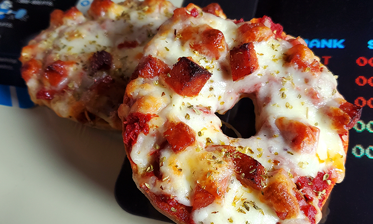 Full disclosure: we were actually invited to try two pizza bagel types during a trial period a couple weekends back, and we thoroughly enjoyed both of them. The Peppy Pizza Bagel (pictured top left) featured diced pieces of pepperoni, mozzarella and provolone cheeses, ranch, a generous scattering of oregano, and a pizza sauce base all melted atop a toasted plain bagel. The Buffy Bagel (pictured top right) has the toasted amalgam of chicken nuggets, blue cheese, mozzarella and provolone, diced onion, ranch, and buffalo sauce on a toasted plain bagel. With the addition of a ranch dipping sauce and a bag of Voodoo Heat chips, it made for a fun and flavorful lunch that we knew we’d be getting again at some point down the road.