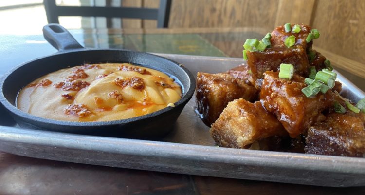 Chicken Fried Fatty Pork Belly tossed in Korean BBQ, Cheese Sauce & Chili Crisp