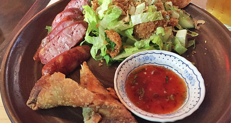 Looking to keep things simple, we went with the Egg Roll and the Charred Sour Sausage (and a Hell beer from Surly Brewing Co.). The Egg Roll, stuffed with cabbage and pork, was incredibly fresh and just the right amount of spicy, making it practically a lunch in itself. The Charred Sour Sausage, meanwhile, was even better than promised, paired with a light and tangy salad complete with cilantro, romaine lettuce, and crispy rice. The sausage itself was rich, deliciously smoked, and deeply flavorful, perfectly portioned for a lunch that left us feeling full, yet anything but stuffed for the afternoon workday ahead.