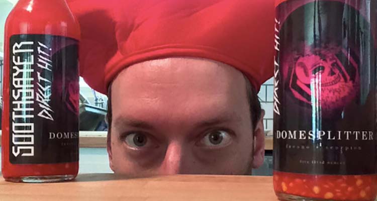 The band sampled a few of Soothsayer’s creations during a Chicago show and settled on a recipe that featured moruga scorpion peppers—one of the hottest peppers on earth—along with Fresno peppers and citrus, calling it Domesplitter. Direct Hit! is the first band Soothsayer has featured, though the young business has an active Kickstarter campaign to help release more sauces.