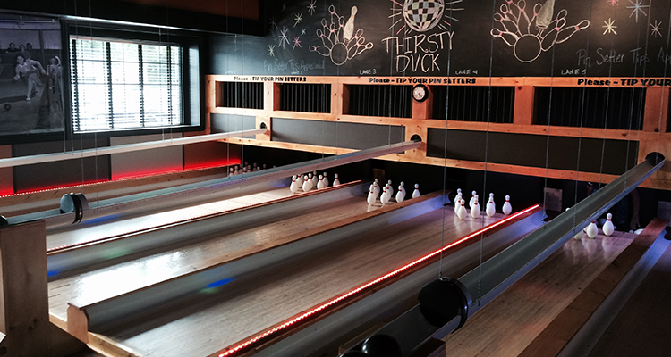 For hundreds of years, mankind has willingly left the comforts of home no matter the conditions and resigned itself to the concept of paying inflated bar prices for drinks that sometimes take upwards of five minutes to receive. This ritual is colloquially called “going out.” But what do patrons do while “out” once they’ve exhausted their pick-up lines, and conversations with friends reach an inevitable lull? Play games, of course. There is no shortage of drinking establishments that rely on entertainment to keep patrons drinking. From dart boards and pool tables to pinball machines and board games, it’s almost more rare when a bar doesn’t have something to help customers kill time. So how does a brand new watering hole set itself apart? Wauwatosa’s newest bar, The Thirsty Duck (11320 W. Bluemound Rd., Wauwatosa, 414-988-4485), is trying to make a name for itself using something the greater Milwaukee area has only seen once before. Last Monday, the zoo-adjacent business joined Koz’s Mini Bowl as the region’s second duckpin bowling alley. Just days after The Thirsty Duck’s ribbon cutting, Milwaukee Record stopped by the suburban bar to knock back some pins and some pints.