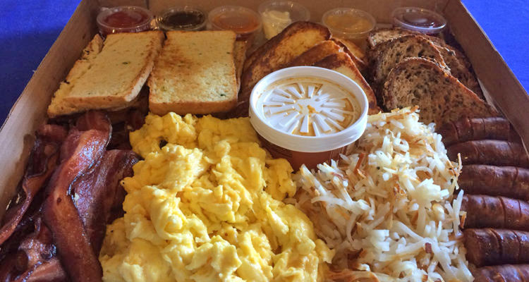 With a much larger kitchen than its Riverwest counterpart, Fuel Cafe 5th Street is also able to experiment with new ways of doing things. For example, as of today, the younger of the two Fuels has thrown its hat into the world of catering and delivery with its massive new breakfast item that makes the famed Super Burrito look like an appetizer by comparison.